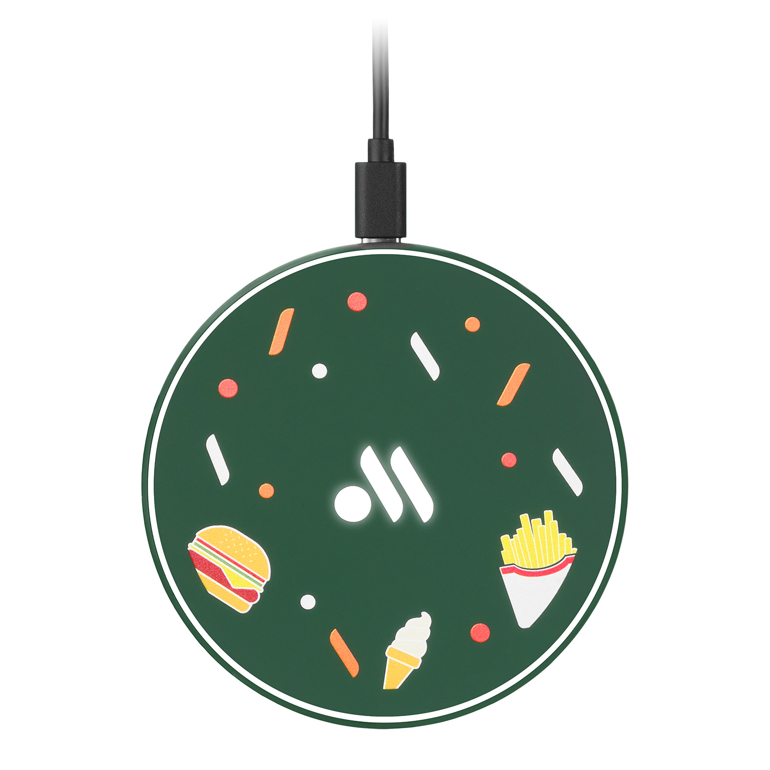 Беспроводное зарядное устройство 15W с подсветкой и покрытием soft-touch. Встроенная LED-панель позволяет создать эффектную подсветку логотипа посредством лазерной гравировки, удачно завершая композицию аксессуара.