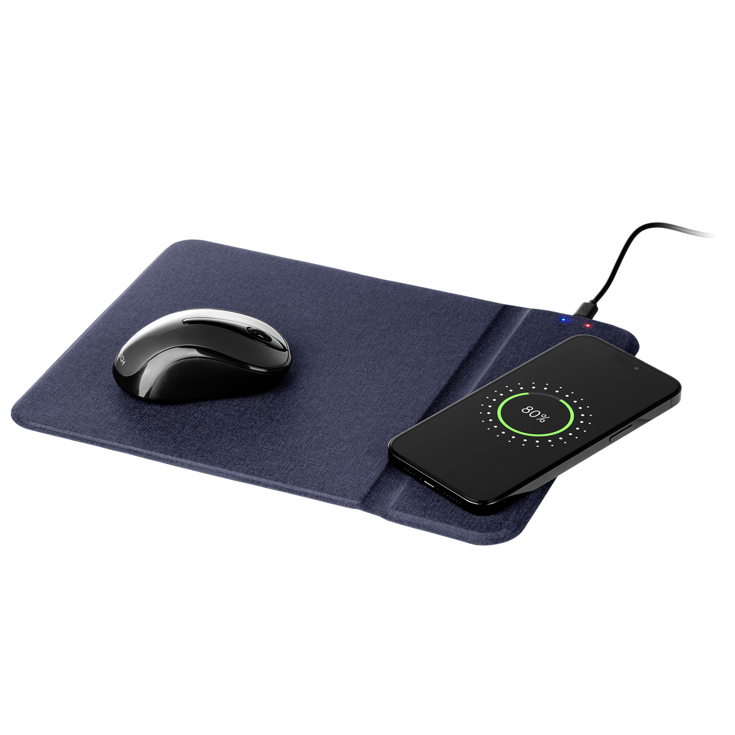 Коврик для мыши с беспроводным зарядным устройством – это функциональный аксессуар, который позволяет экономить место на рабочем столе и работать сразу с несколькими устройствами. Спокойный цвет и минималистичный дизайн делают аксессуар универсальным. Коврик легко превращается в подставку для телефона, для зарядки и удобного просмотра фильмов.