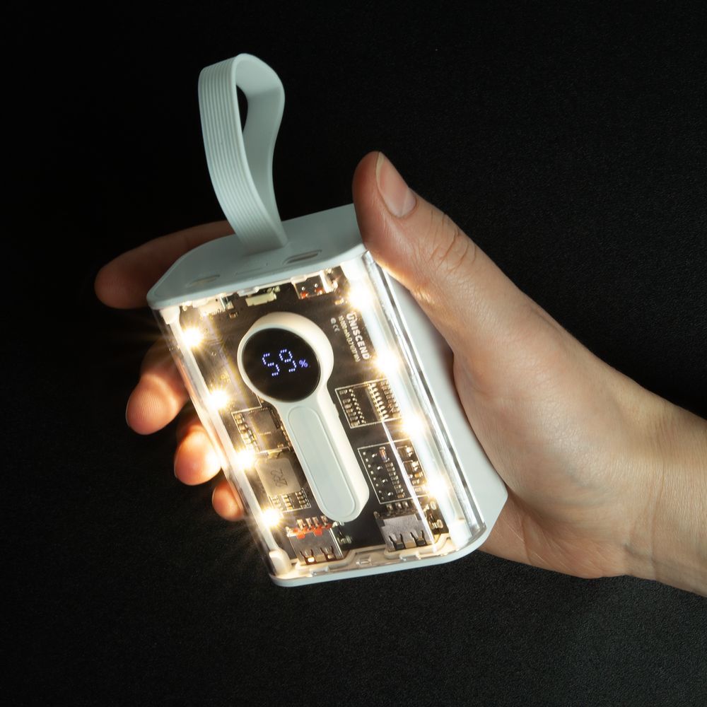 Необычный дизайн коллекции Uniscend Trellis выгодно выделяет новую серию устройств из прозаичного ряда внешних аккумуляторов. Они не поддерживают беспроводную зарядку, зато точно привлекают внимание: под прозрачной панелью хорошо видны электронная начинка и цифровой индикатор оставшегося в аккумуляторе заряда, а мягкая подсветка светодиодами теплого оттенка логичным образом дополняет технологичный внешний вид.