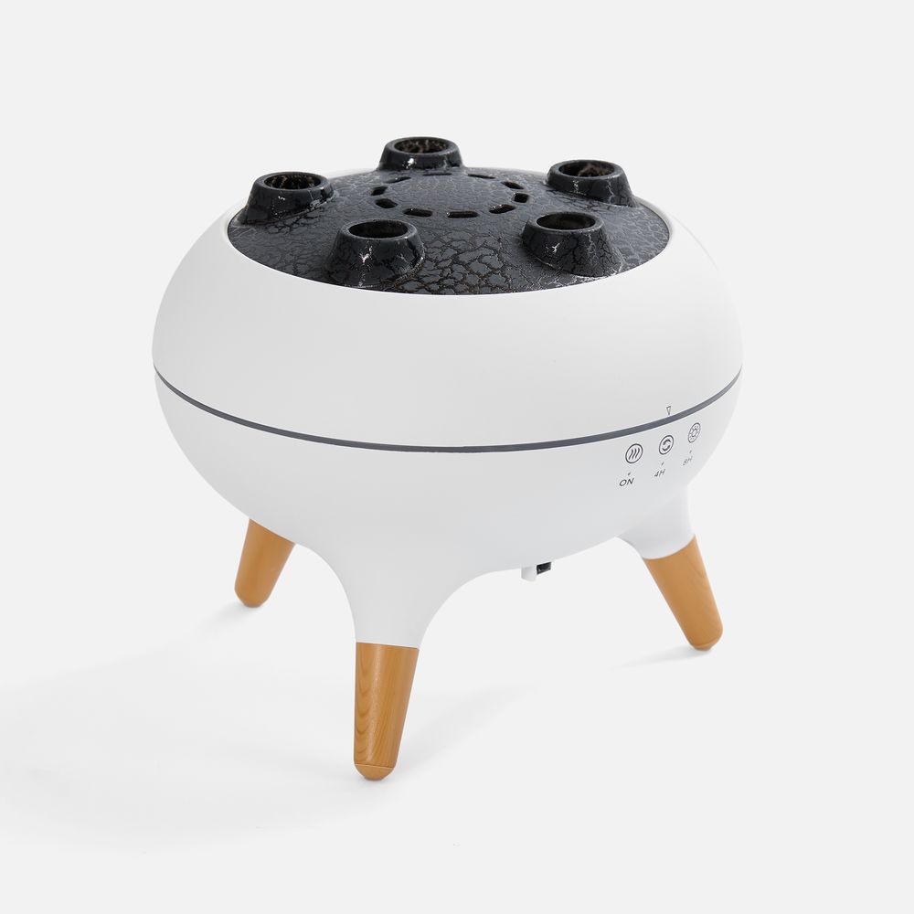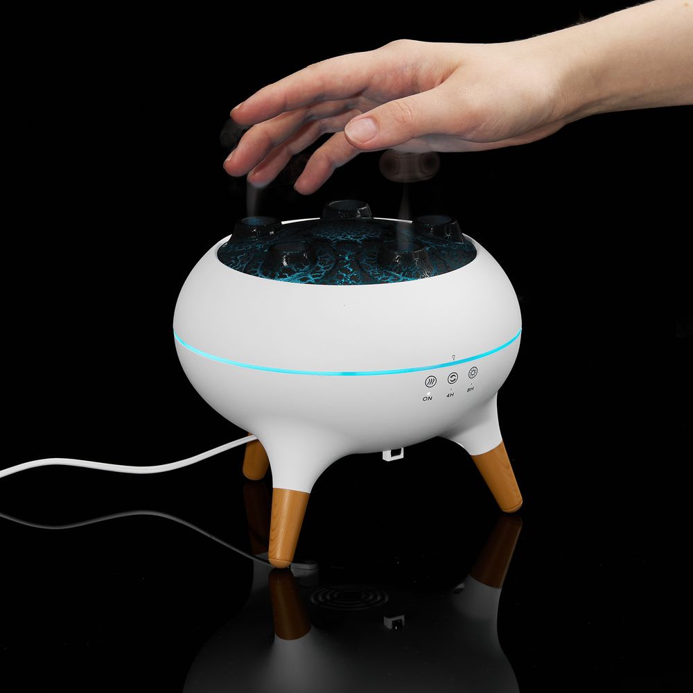 Помимо стандартных струек пара посередине крышки, Cloudini умеет выпускать маленькие облачка влажного воздуха из 5 отверстий по окружности поочередно или динамически в такт музыке. Устройство реагирует на звуковые колебания и выстраивает интенсивность распыления в зависимости от мелодии.