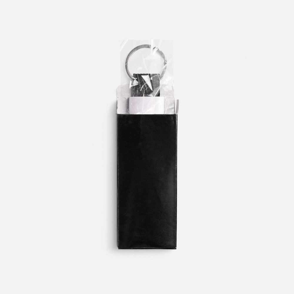 Минималистичный металлический брелок с тканевой вставкой.