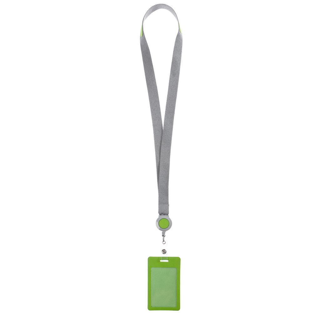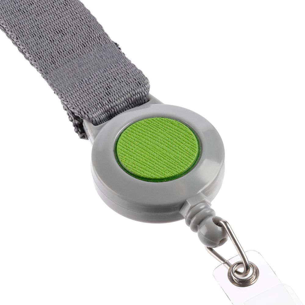 Чехол для пропуска из искусственного материала с пластиковым окошком, прикрепленный пластиковым клипом к ретрактору и ленте.