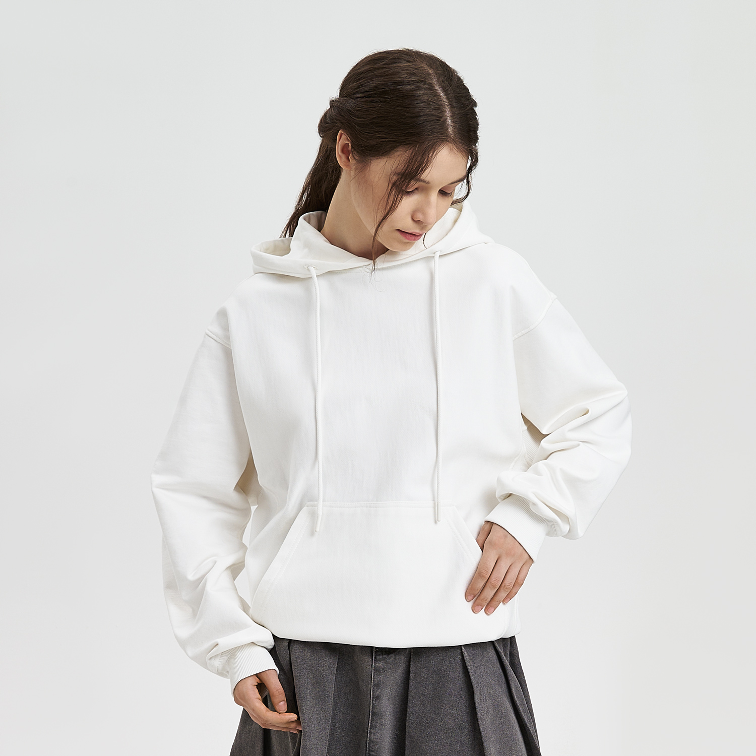 ADVENTURE худи для тех, кто выбирает свободу движения и уверенность в каждом шаге. Умеренно свободный силуэт и слегка заниженная линия плеча создают расслабленный, но собранный образ. Объёмный капюшон с регулировкой на шнурке защищает от ветра и добавляет ощущение уюта. Эластичные боковые вставки из риба не только для комфорта в движении, но и как смелый дизайнерский акцент. Манжеты и нижний край выполнены из трикотажной резинки в рубчик. Классический карман-кенгуру функциональный и выразительный элемент.