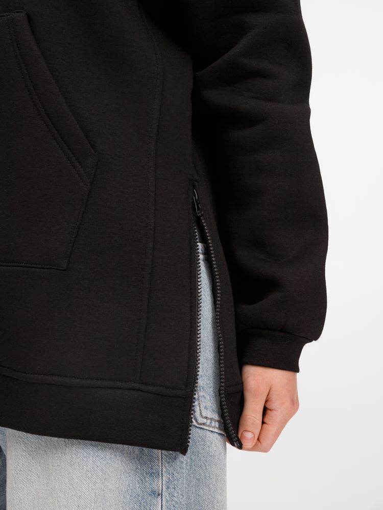 Худи унисекс удлиненного силуэта с молниями в боковых швах.