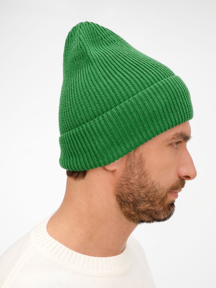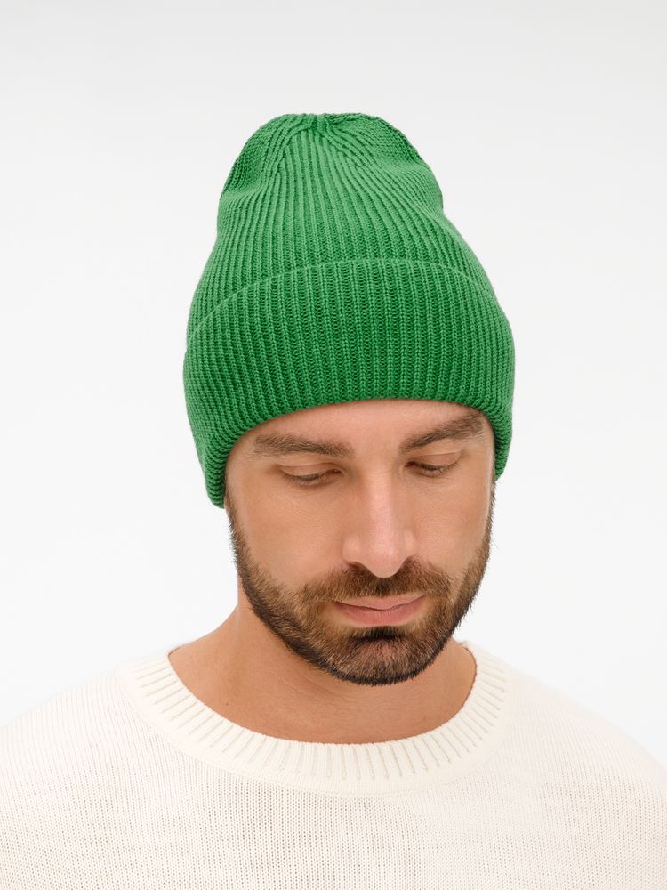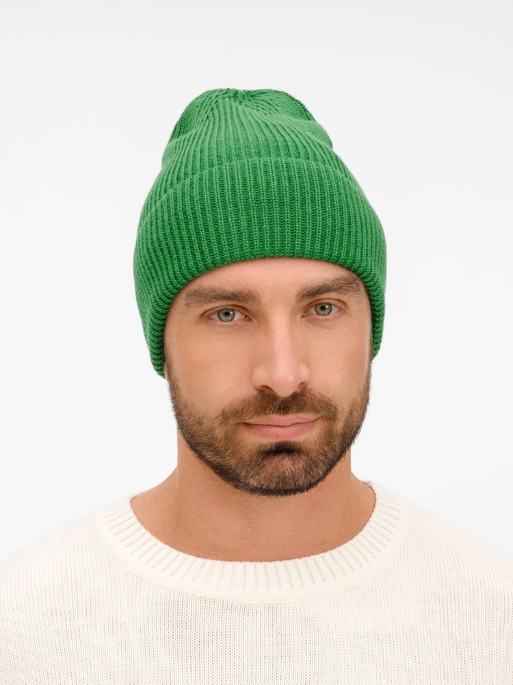 Удлиненный силуэт шапки Nobilis Mono из мягкой полушерстяной пряжи с широким отворотом создает стильный современный образ, а фактурная вязка добавляет объем и выразительность.