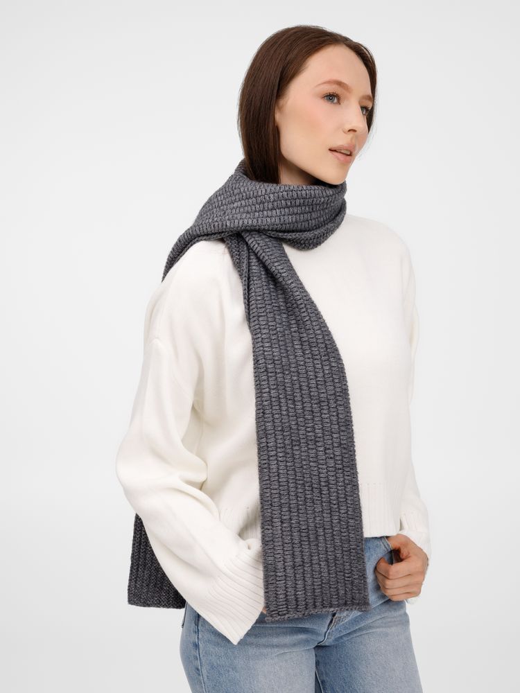 Однослойный шарф Frissonelle фактурной вязки универсальный аксессуар: полушерстяная пряжа с выразительным рельефным узором создает объем, даря тепло и ощущение уюта. Сдержанная палитра и лаконичный дизайн делают его гармоничным дополнением к пальто, куртке или пуловеру.