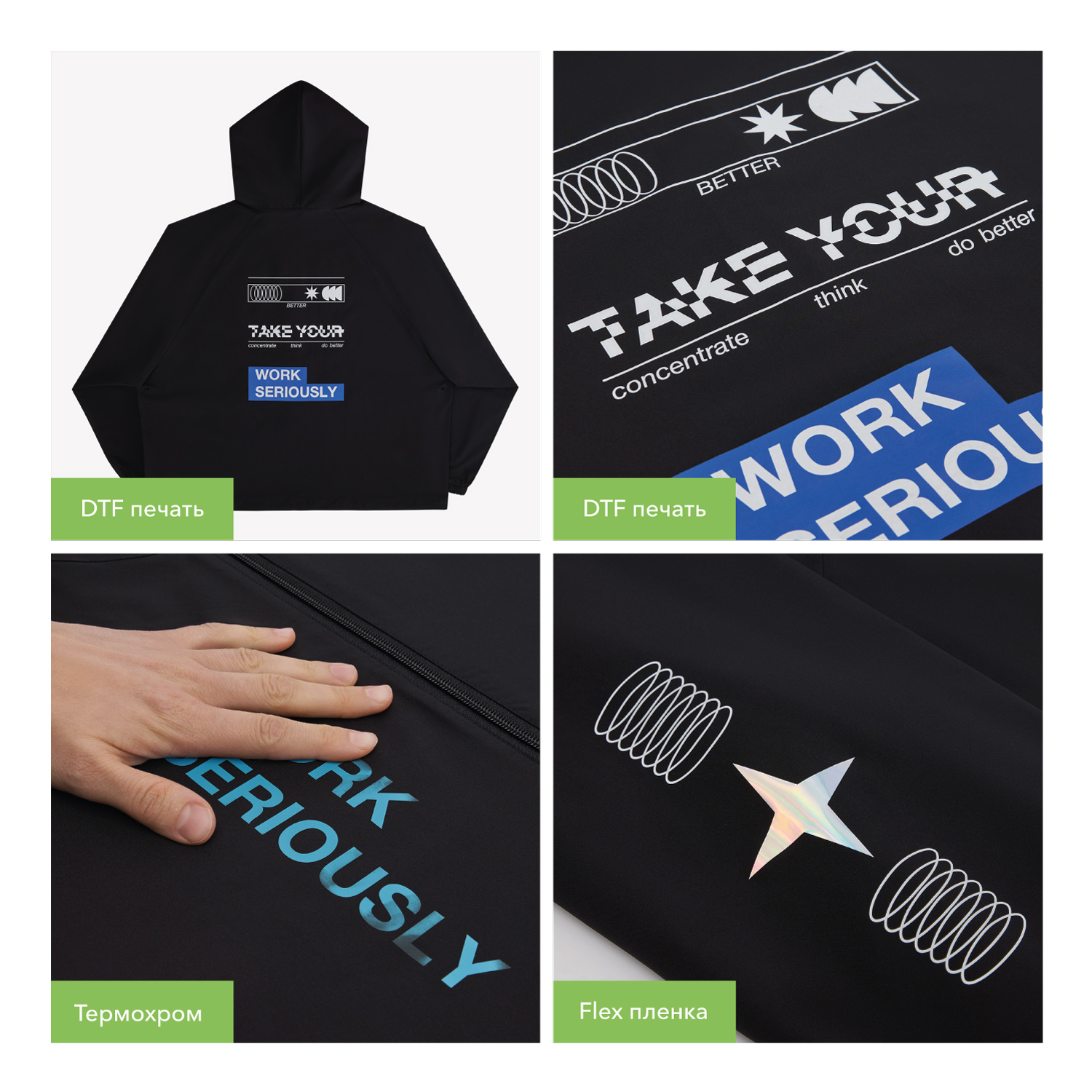 Идеально подходит для брендирования: вышивка (долговечное нанесение логотипа на грудь или рукав) и термотрансфер (яркая полноцветная печать сложных изображений). Оба метода гарантируют стойкость к стиркам и сохраняют презентабельный вид мерча.