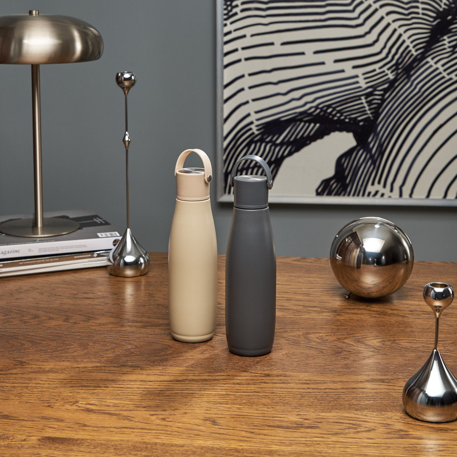 Термобутылка Bosca объемом 480 мл современный дизайн и практичность в каждом элементе. Обтекаемая форма удобно ложится в руку, а крышка с надежной конструкцией и удобной ручкой делает переноску максимально комфортной.