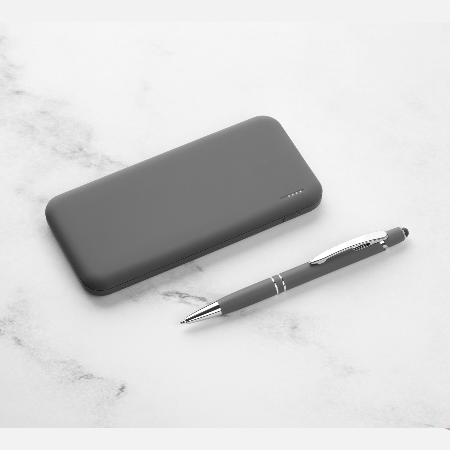 Нанесение логотипа методом лазерной гравировки (вскрывает изящный серый металл) обеспечивает долговечность и премиальный вид. Альтернативно доступны УФ-печать и тампопечать для цветных элементов. Технологии позволяют размещать даже сложные логотипы с сохранением тактильных свойств покрытия Soft Touch.