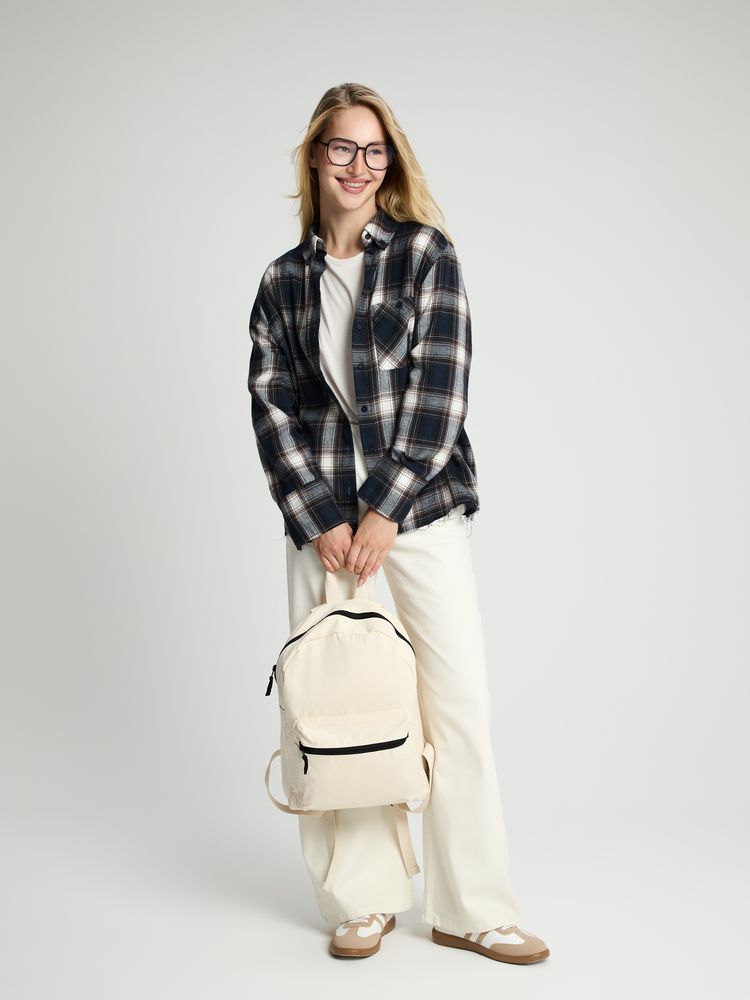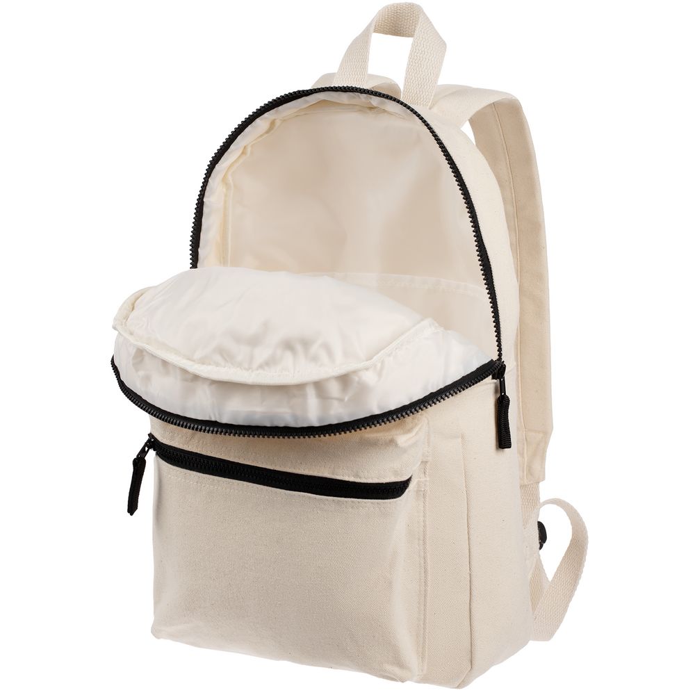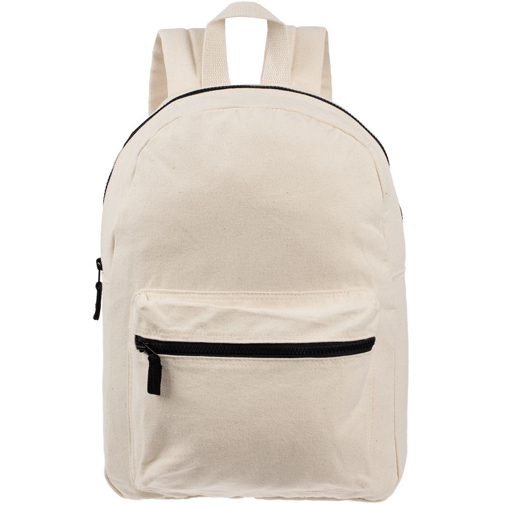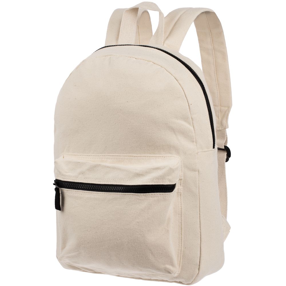 Легкий рюкзак в экостиле из плотного неокрашенного хлопка с контрастными деталями.