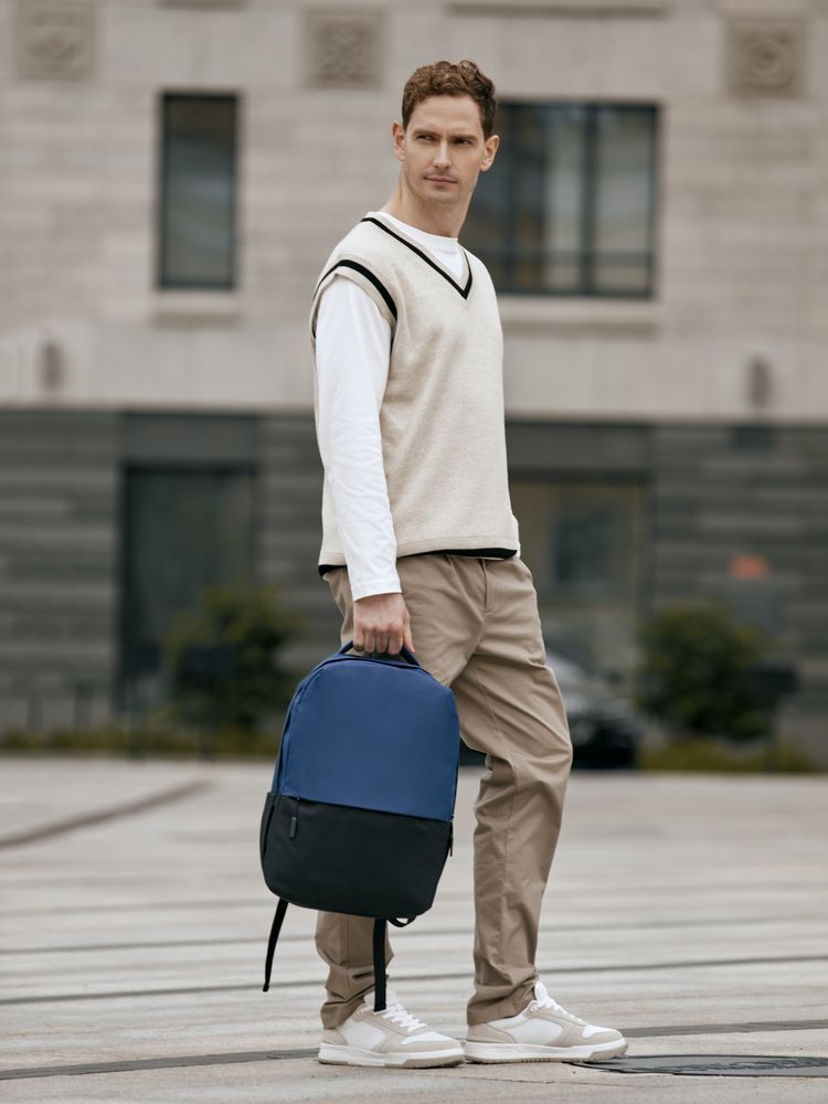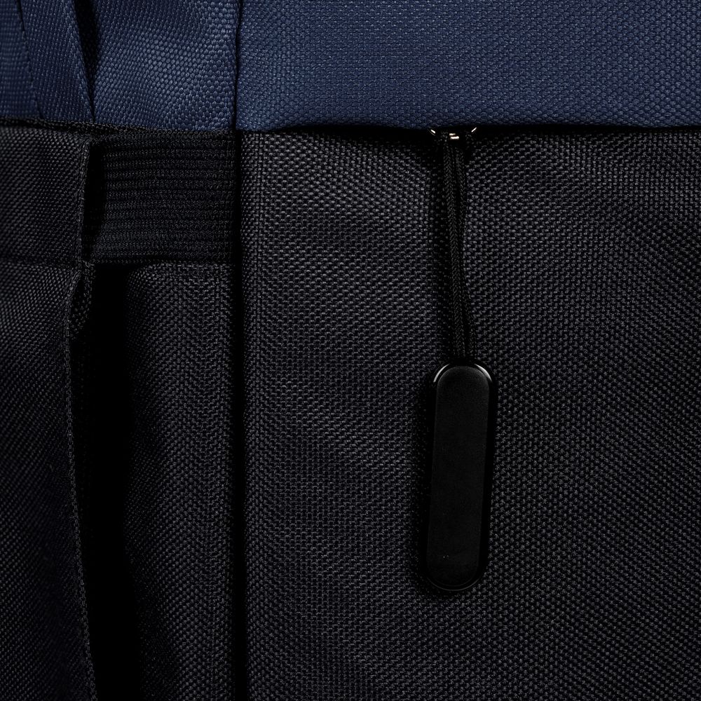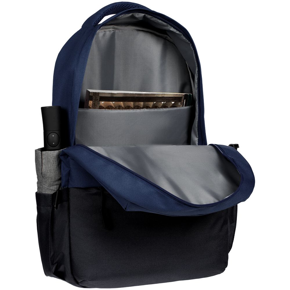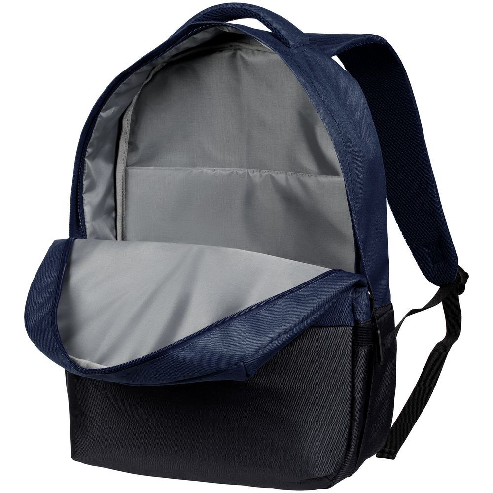 Двухцветное исполнение с темным низом и более светлым верхом, с одной стороны, помогает рюкзаку дольше сохранять опрятный внешний вид, а с другой позволяет активнее и контрастнее выделить логотип компании.