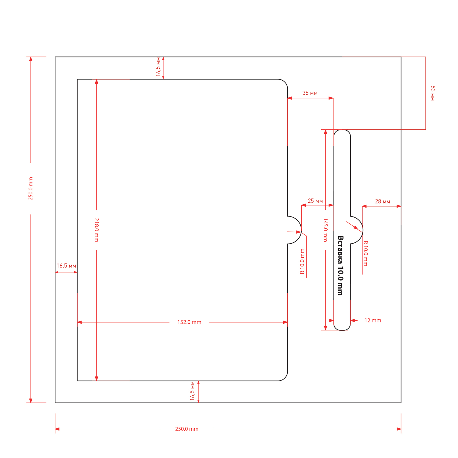 - крышка: 256 х 256 мм