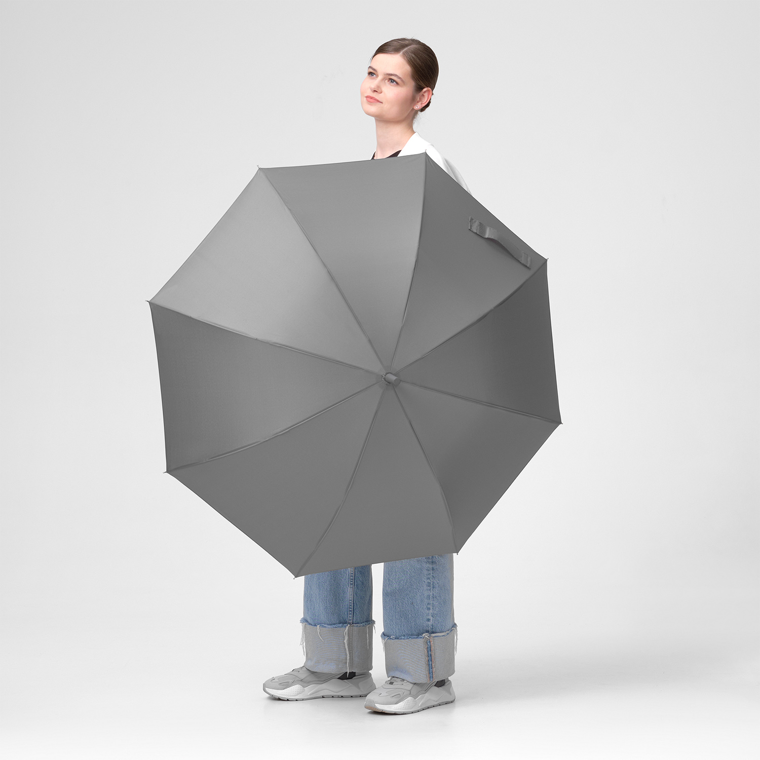 Удобная ручка в цвет купола зонта. PU-покрытие на ручке зонта обеспечивает комфортное и долговечное использование аксессуара: оно устойчиво к истиранию, не скользит в руке и не становится липким.