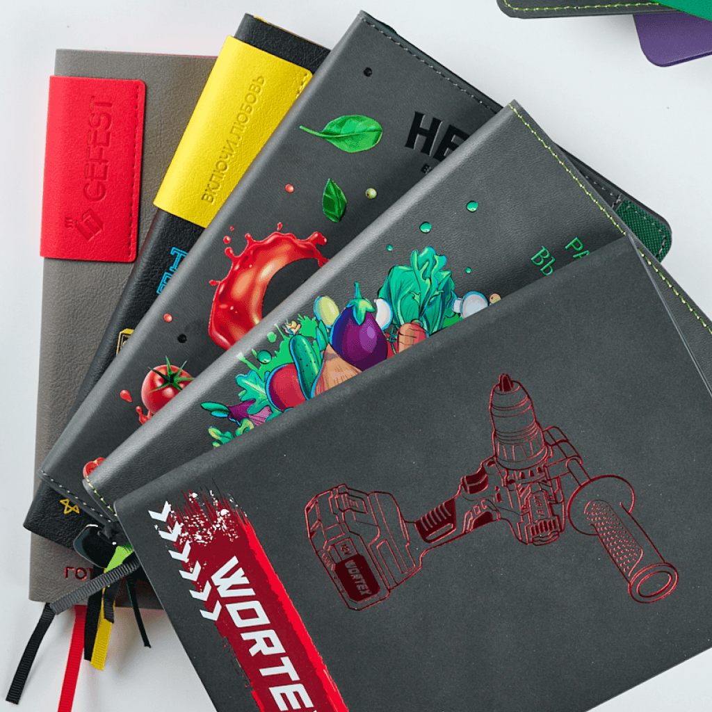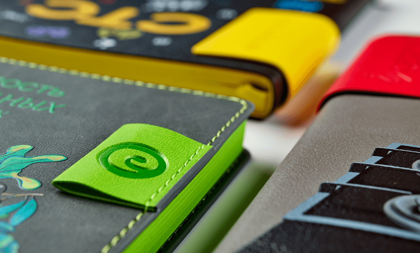 Закажите качественный брендинг ежедневников и бизнес-блокнотов на заказ. Премиальное нанесение логотипов: УФ-печать, тиснение фольгой, шелкография.
