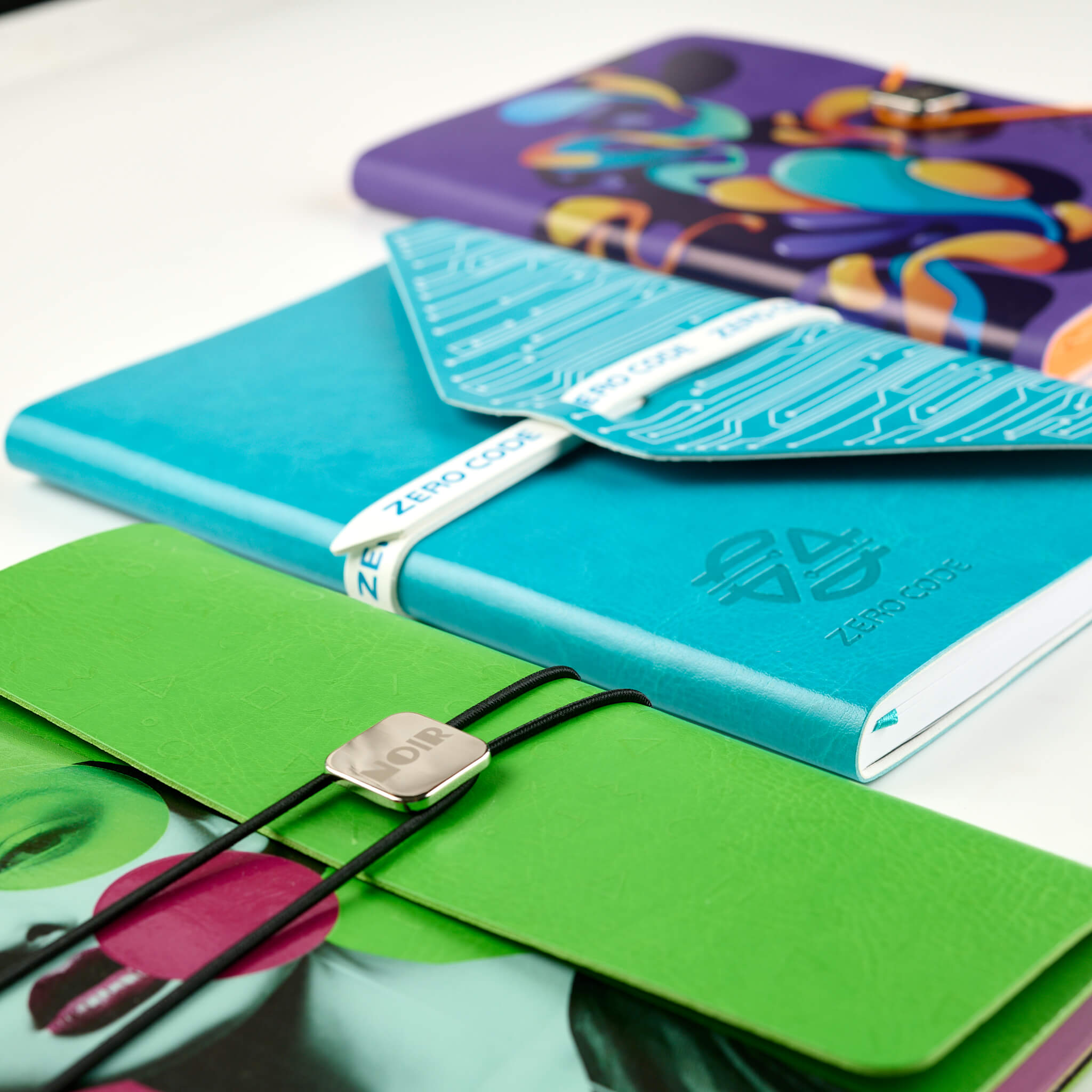 Использование нескольких методов брендинга на ежедневниках или бизнес блокнотах.