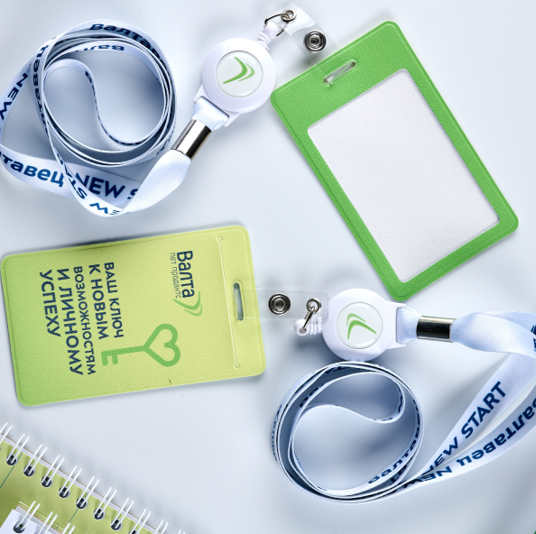 Лента для бейджа, это первое касание с брендом в офисе. Спокойные тона и премиальная фурнитура делают ее важной частью корпоративного набора.
