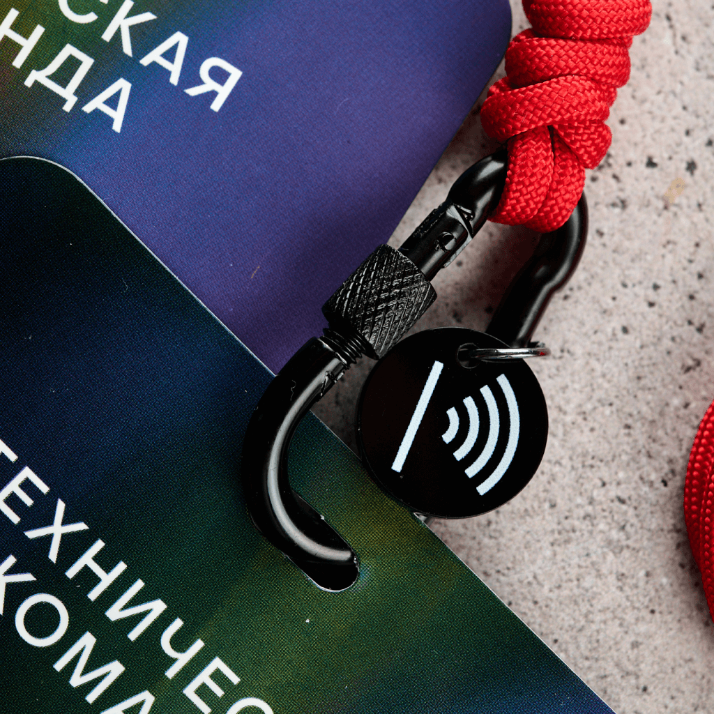 Браслет, это очень удобный крепеж. На него можно надежно зафиксировать пропуск, мобильный телефон, фотоаппарат или даже спортивную бутылку воды во время выставок или походов.