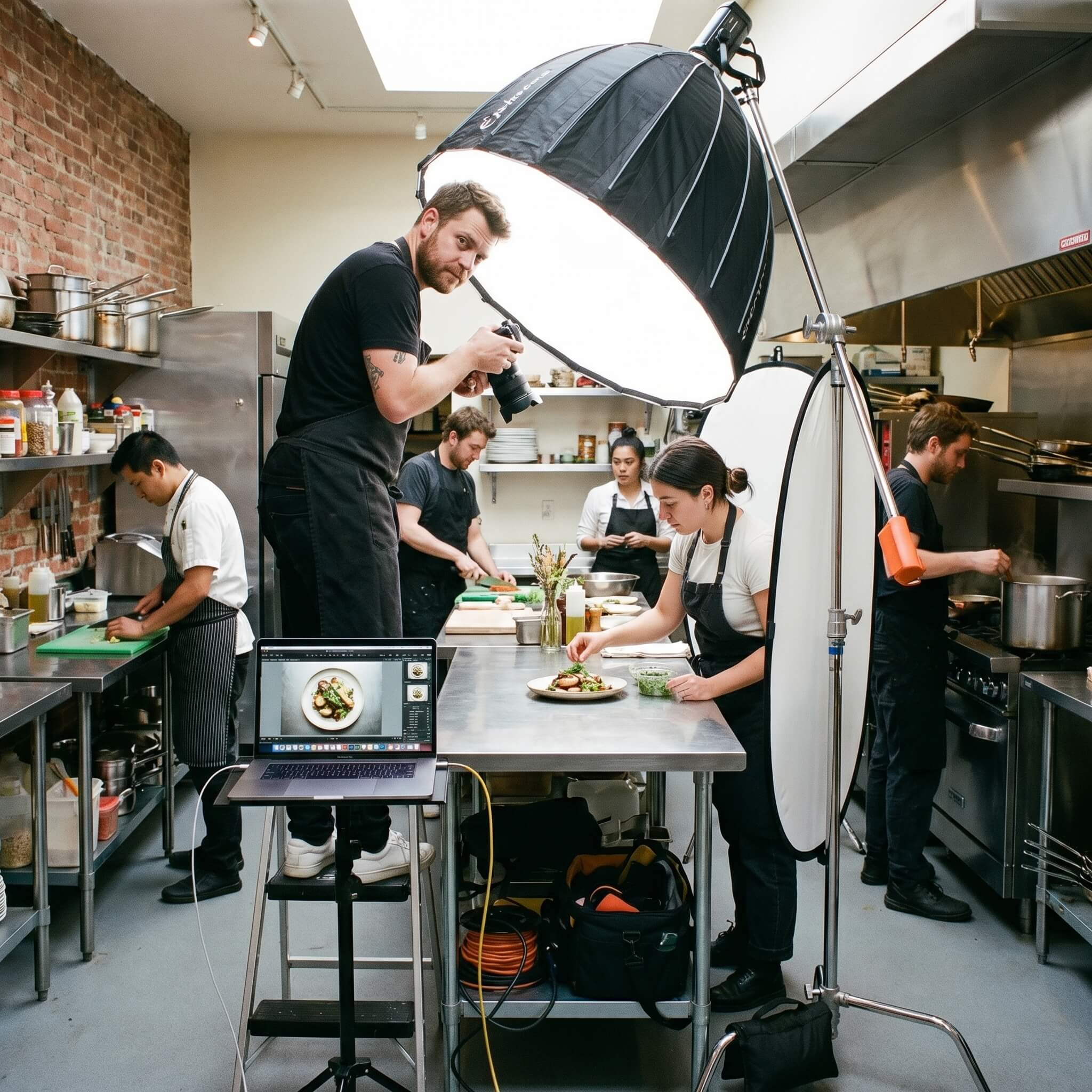 Мы ценим время рестораторов и отлично понимаем специфику работы кухни. Благодаря четкому таймингу и подготовке, процесс проходит без стресса для вашего персонала. За несколько часов сфокусированной работы мы создаем максимум качественного материала, позволяя заведению работать в обычном ритме.
