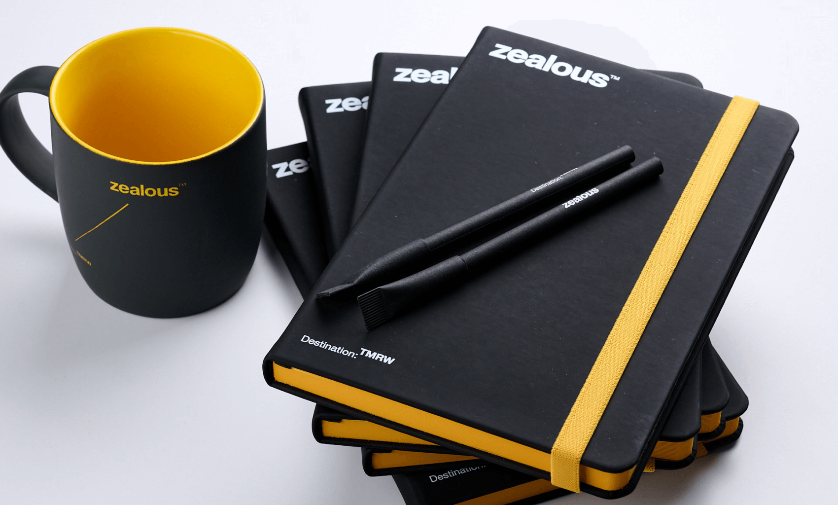 Проект был реализован по заказу рекламного агентства PromoWorld для компании Zealous. Мы изготовили на заказ стильный комплект, включающий фирменные ежедневники, кружки и эко-ручки. Основная идея проекта — создать практичный и визуально цельный набор для сотрудников, который отражает бренд Zealous и делает работу в офисе более комфортной и вдохновляющей.