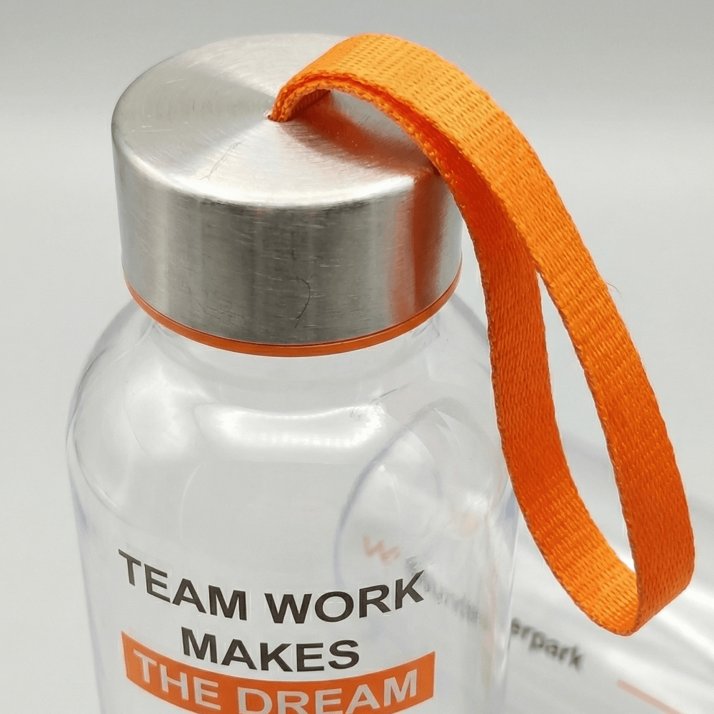 Главная особенность этого проекта в том, что бутылка работает сразу в двух направлениях: как полезный предмет на каждый день и как носитель фирменного стиля. Прозрачный корпус, лаконичная форма, яркие акценты в нанесении и удобная петля делают изделие визуально современным и понятным для аудитории. Такой подход особенно важен для школьного мерча, детских welcome pack и брендированных подарков, которые должны быть не только красивыми, но и действительно удобными в жизни.