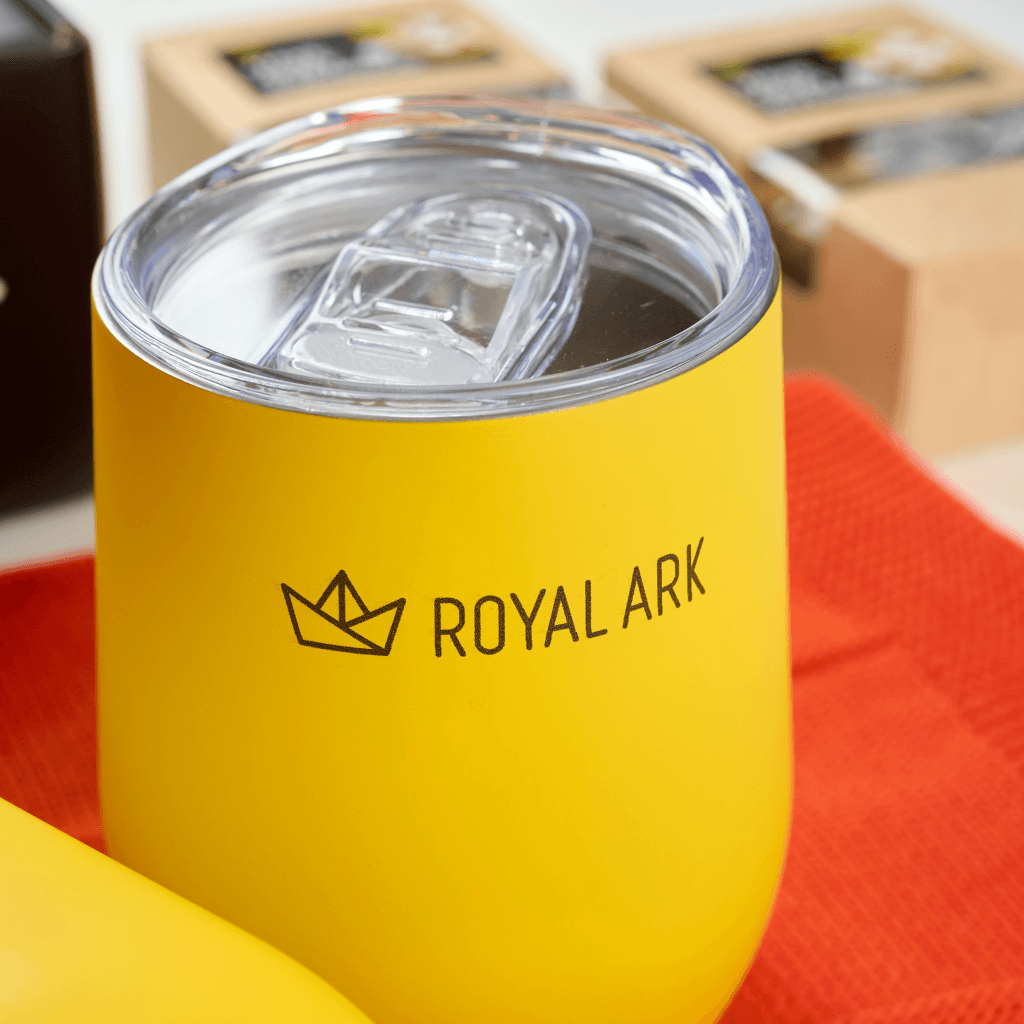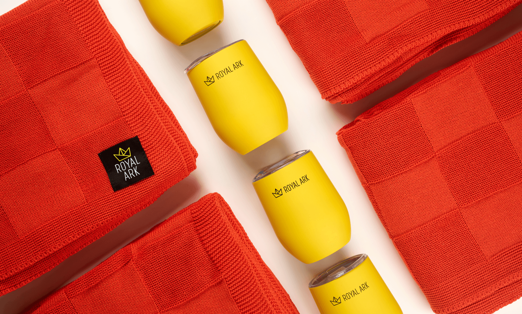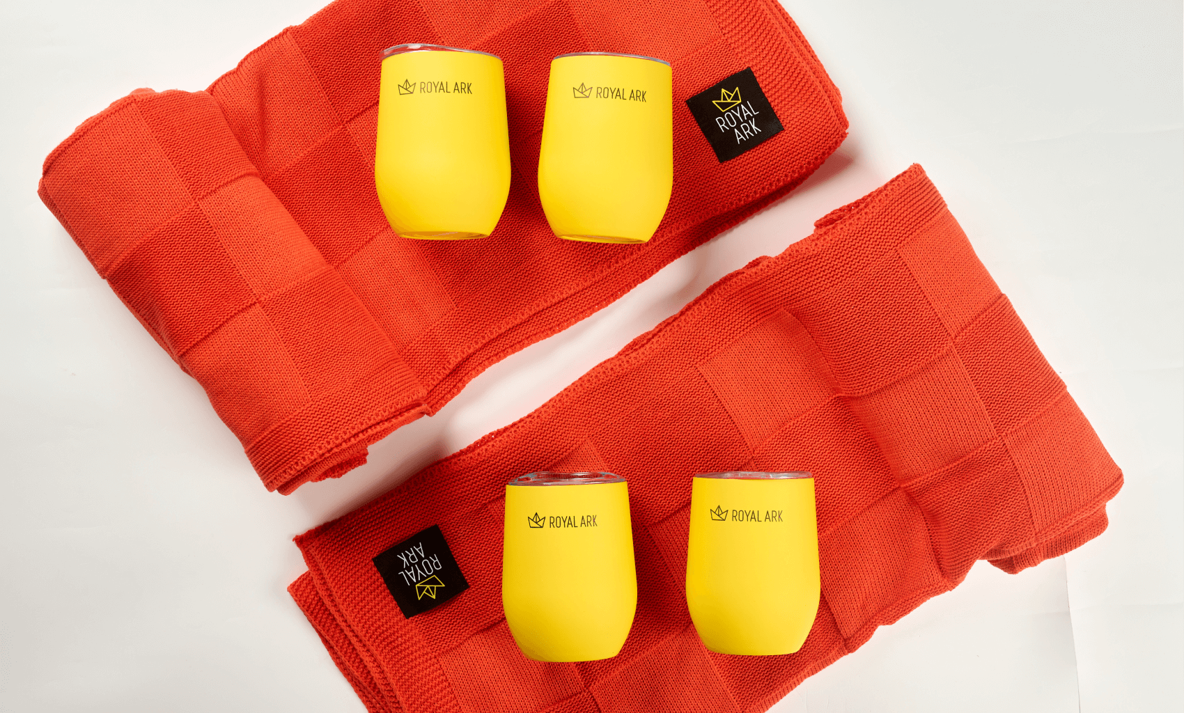 Наполнение набора мы собрали вокруг сценария теплого зимнего вечера. Яркий трикотажный плед с контрастным шевроном Royal Ark создает ощущение уюта и добавляет фирменный цвет в интерьер. Фруктовый чай на основе гибискуса с пряностями дополняет впечатление и дает понятный ритуал заботы о себе. Универсальная желтая термокружка Vacuum mug C1 с уф печатью логотипа сохраняет температуру напитка и становится ежедневным аксессуаром, который постоянно напоминает о бренде.