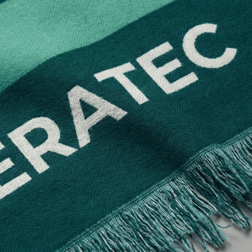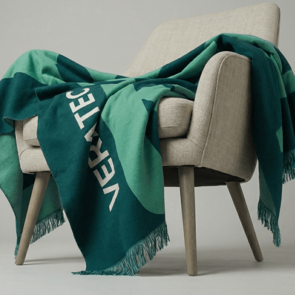 Все начинается с настройки плотности вязки, выбора состава пряжи и адаптации фирменных цветов под технологию производства. Мы разрабатываем индивидуальный макет вязки. Плед дополняется бахромой и ровной обработкой краев. Отдельная часть проекта: упаковка. Мы производим такие пледы на заказ от 50 штук.