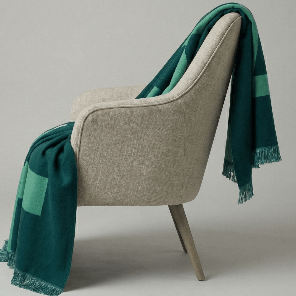 Качество начинается с выбора плотной хлопковой пряжи и настройки жаккардового плетения. Мы контролируем плотность вязки, точность цветов и геометрию рисунка, чтобы плед выглядел аккуратно и служил долго даже при ежедневном использовании.
