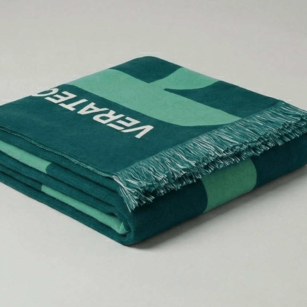 Плед XL (120×180 см) с вашим дизайном. Плотность 550 г, 60% хлопка, индивидуальное производство, коробка с печатью. Уникальный корпоративный подарок на заказ.