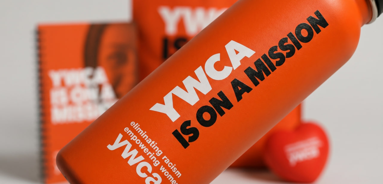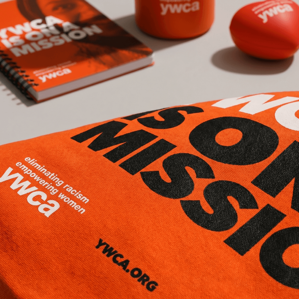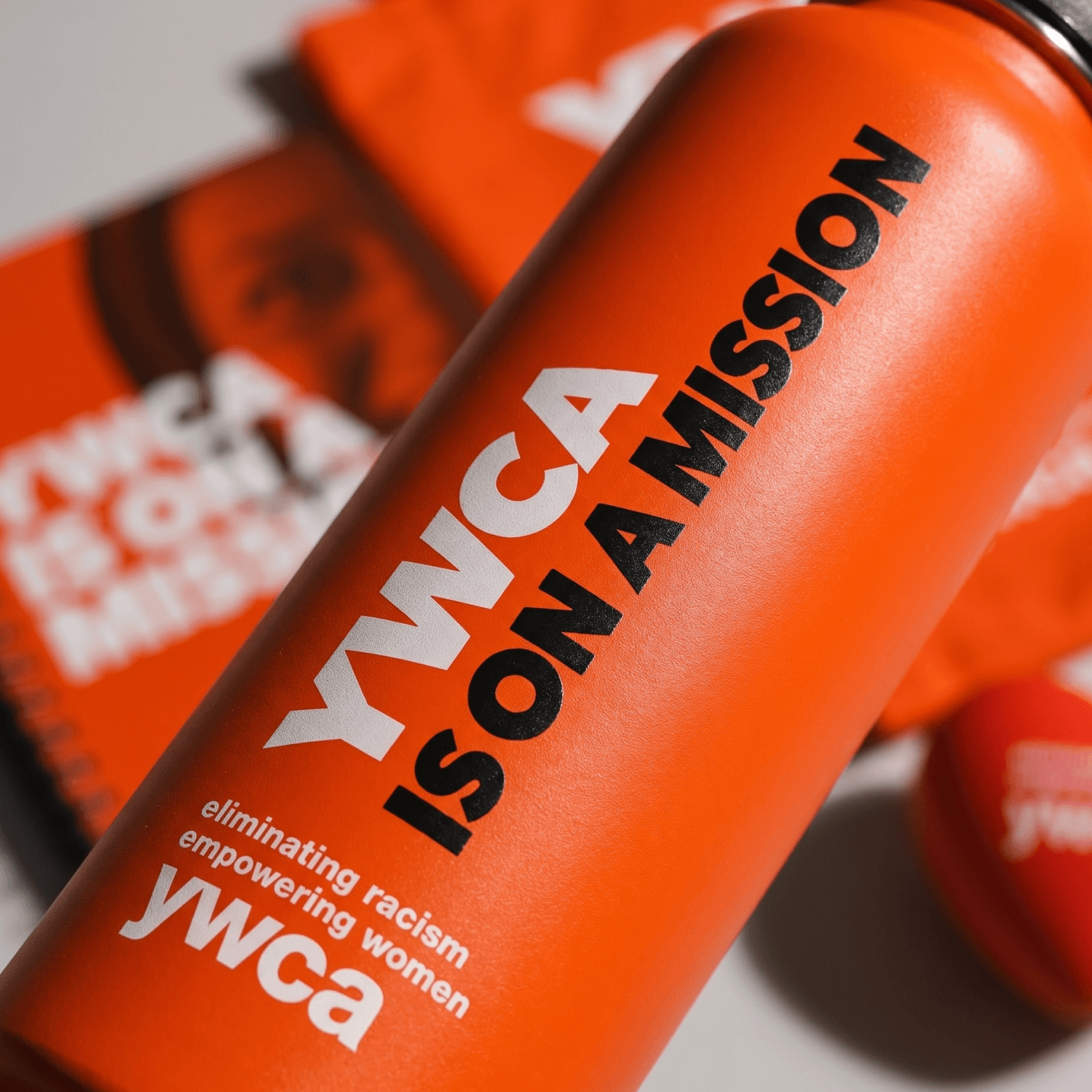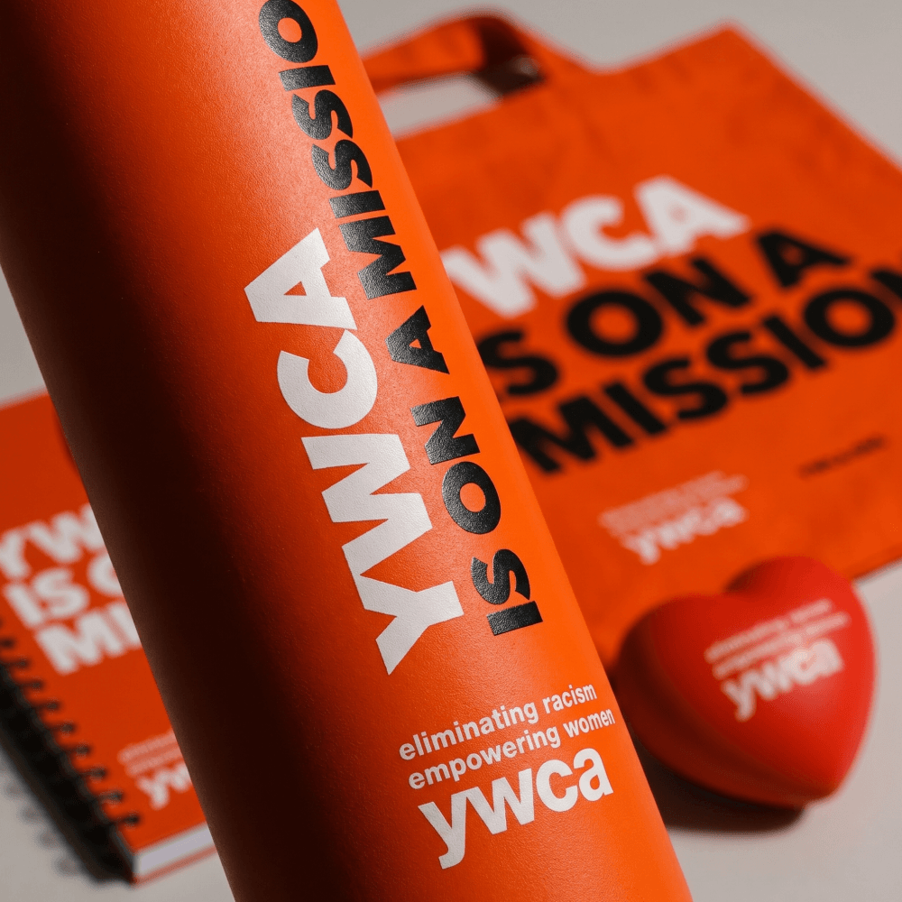 Для YWCA мы собрали капсульный набор мерча, где каждый носитель продолжает общую миссию бренда. В проект вошли шоппер, брендированная бутылка, блокнот на пружине и антистресс в форме сердца. Яркий оранжевый цвет, крупная типографика и контраст черного с белым делают коллекцию заметной, эмоциональной и очень уверенной по подаче.