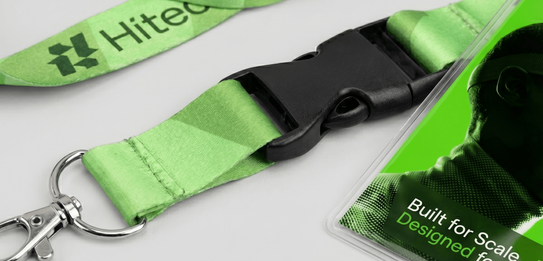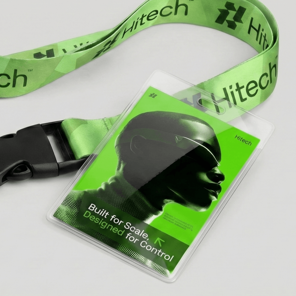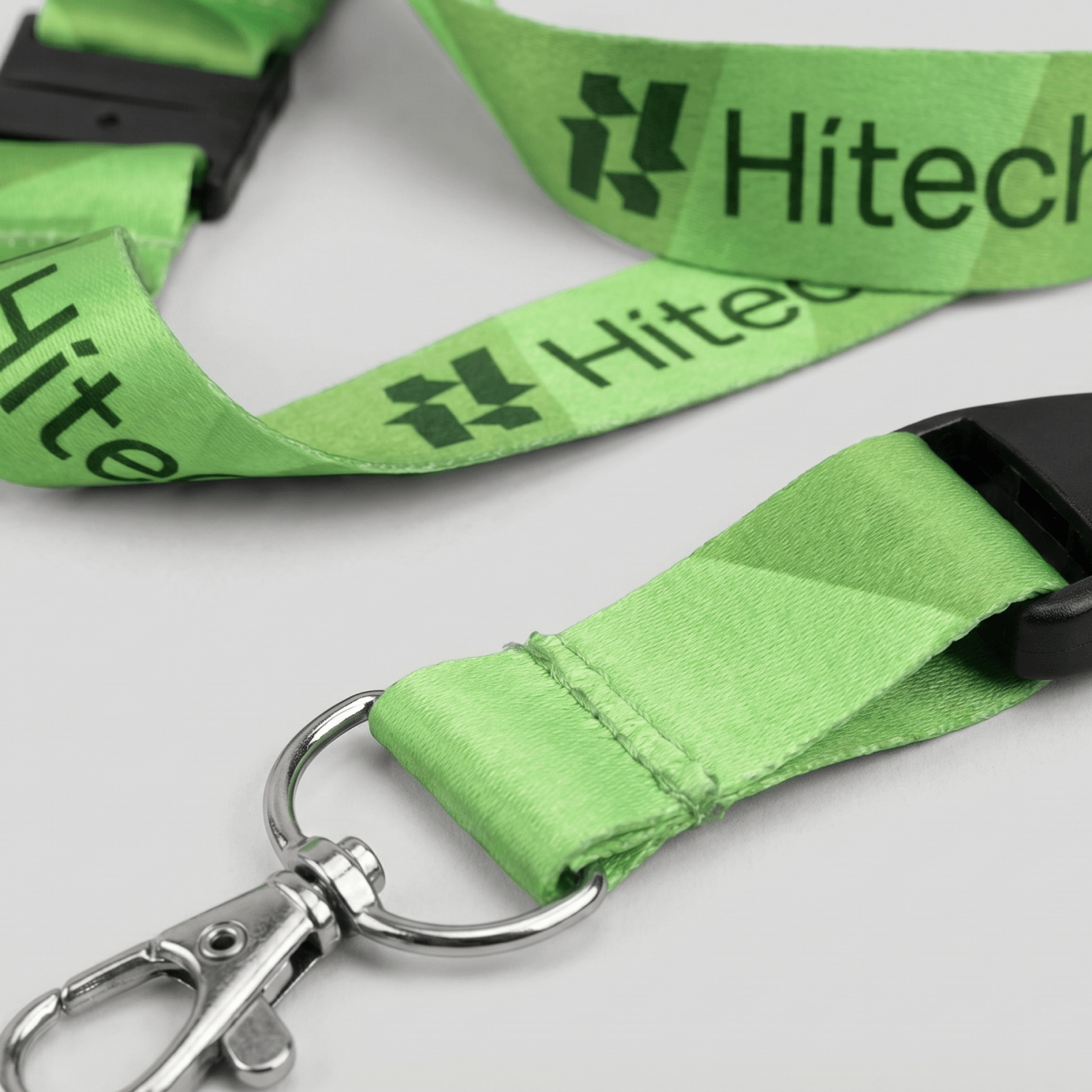 Для Hitech мы разработали яркие фирменные ленты для бейджей, которые сразу работают как элемент навигации, безопасности и визуальной идентификации бренда. Основой проекта стала лента шириной 25 мм с полноцветной сублимационной печатью с двух сторон. Такой формат дает насыщенный цвет, чистую передачу логотипа и аккуратный повтор фирменной графики по всей длине изделия.