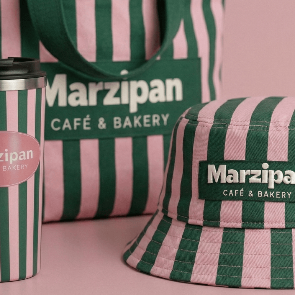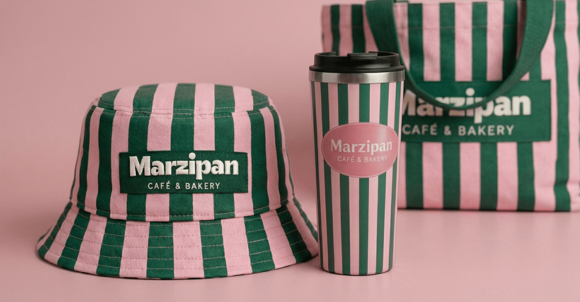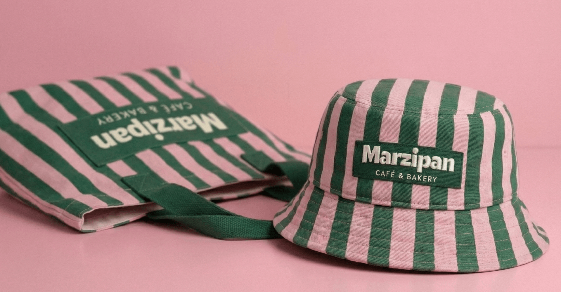 Панамы для Marzipan Café созданы как модный мерч на заказ с дизайном, который хочется носить каждый день. Это не стандартный сувенир, а полноценный аксессуар для merch shop, который усиливает визуальный стиль бренда и работает на узнаваемость кафе вне точки продаж.