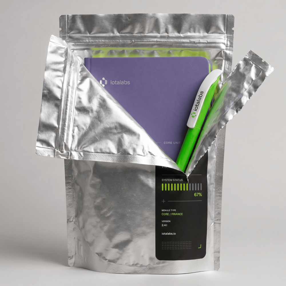 WOW-эффект при вскрытии, который гарантирует персонализированная металлизированная упаковка. Серебристый пакет дой-пак с застежкой и брендированной этикеткой обеспечивает защиту и создаёт впечатление секретного, важного груза. Весь процесс от идеи до изготовления комплектов под ключ, включая логистику, занимает минимальные сроки. Наша компания производит такие премиальные брендированные ежедневники тиражами от 50 штук, делая их доступными для нишевых проектов.