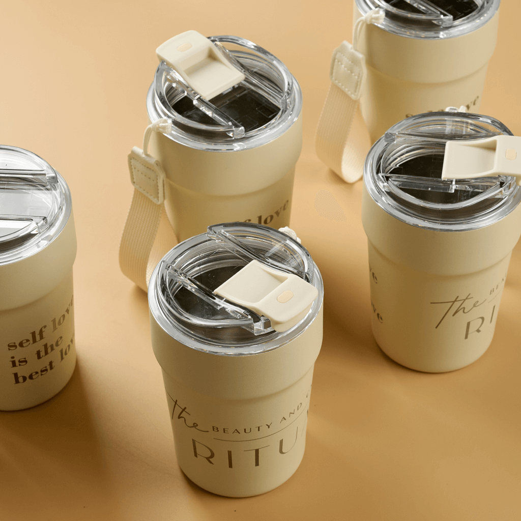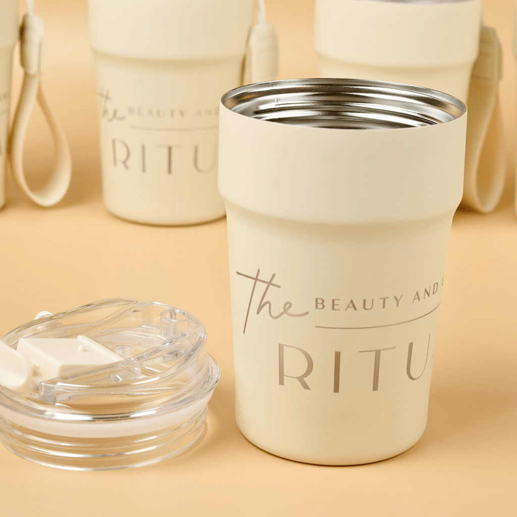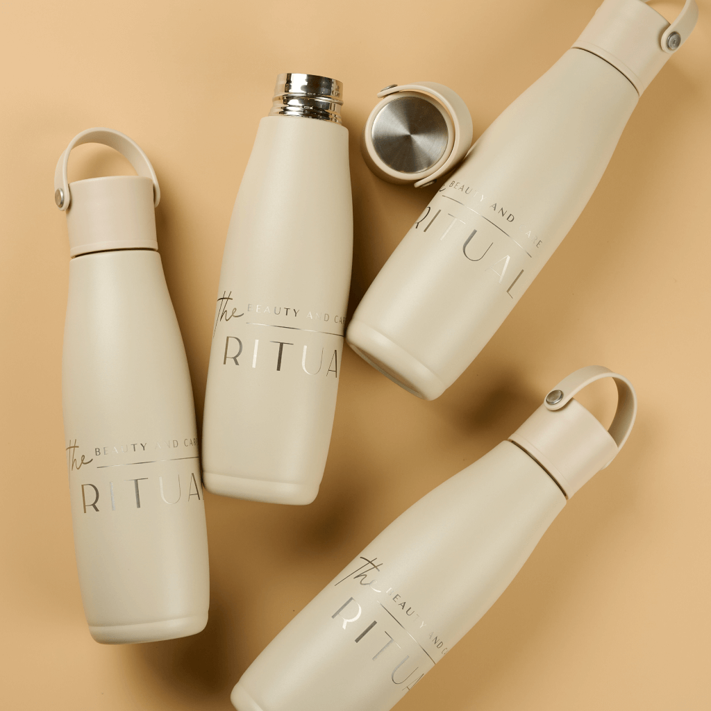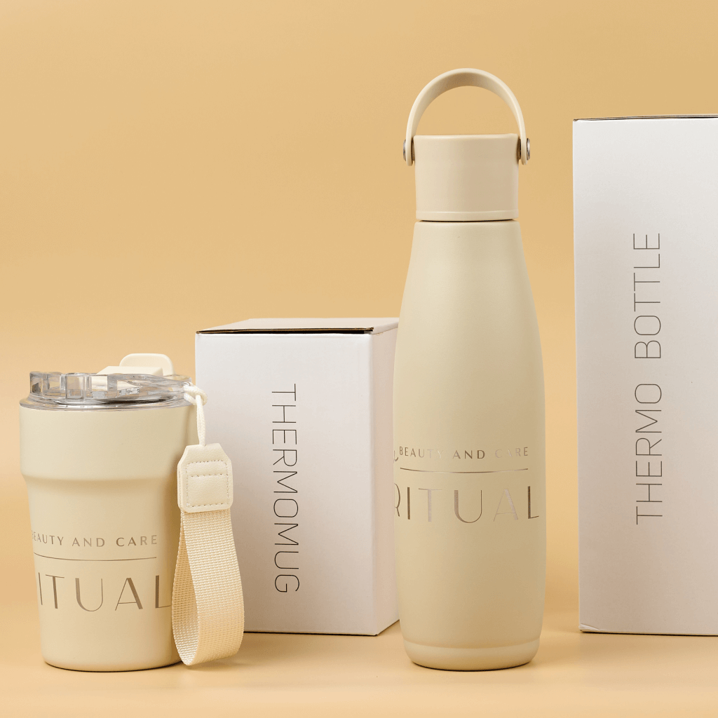 Коллекция создана как инструмент заботы о гостях и одновременно как носитель бренда. Постоянное напоминание пить воду и стильный аксессуар усиливают ощущение личного ритуала красоты. Термопосуда многоразовая, легко моется, не впитывает запахи и подходит для горячих и холодных напитков. Клиент пользуется бутылкой каждый день и мягко транслирует бренд Ritual в офисе, спортзале и на улице.