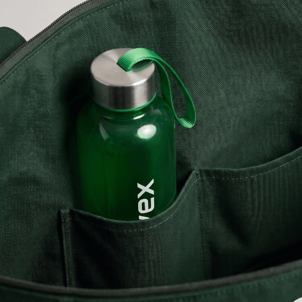 Особое внимание уделено технологиям брендинга. Логотип на сумке нанесен методом износостойкой шелкографии, сохраняющей яркость даже после стирок. В набор интегрирована эргономичная бутылка для воды с матовым покрытием, где фирменная символика выполнена с помощью круговой УФ-печати. Это гарантирует четкость деталей и премиальный внешний вид.