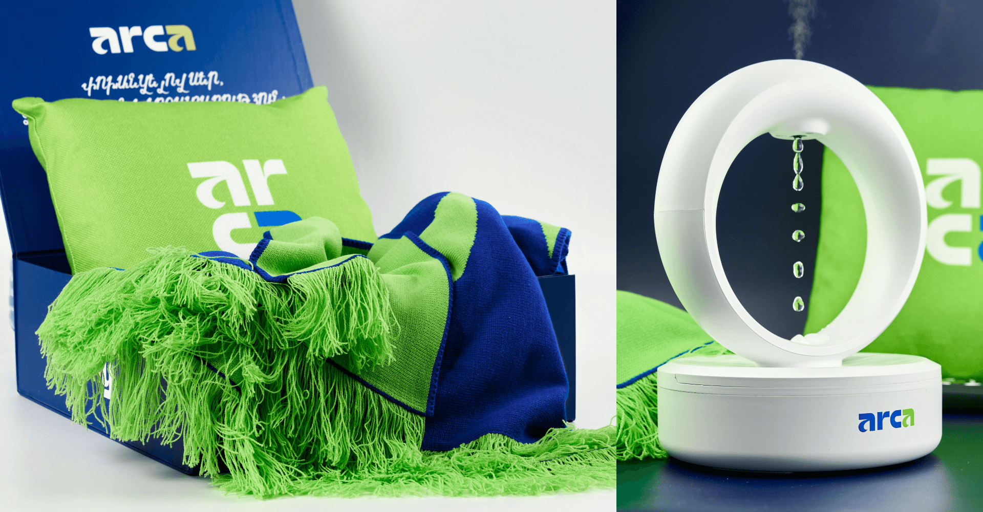 Центром набора стал ультразвуковой увлажнитель zeroG с эффектом парящих капель и функцией ароматизации. Его дополнил мягкий вязаный плед 7-го класса вязки, выполненный из смеси хлопка, шерсти и акрила для максимального тепла. В сет также вошла интерьерная подушка 40x40 см с полноцветным нанесением. Все составляющие упакованы в кашированную коробку на магнитном клапане. Эти подарочные наборы для сотрудников от Impulse Media продуманы до мелочей: от тактильных свойств текстиля до завораживающей визуальной магии антигравитационного прибора.