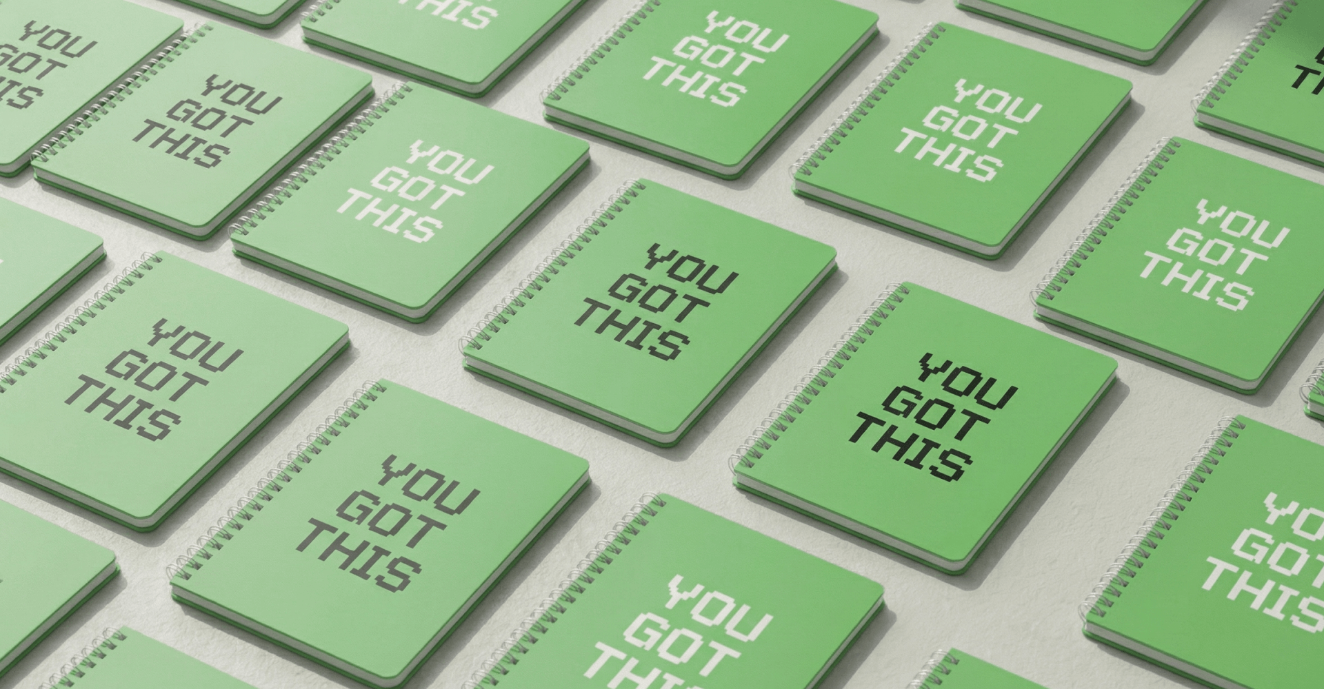 Особенность проекта в том, что мерч не выглядит случайным набором стандартных позиций. Здесь каждый предмет поддерживает общую идею бренда: пиксельная типографика, короткие мотивационные фразы, контрастный зеленый цвет и минималистичная графика. Такой подход усиливает восприятие welcome box как части корпоративной культуры, а не просто набора сувениров с логотипом.